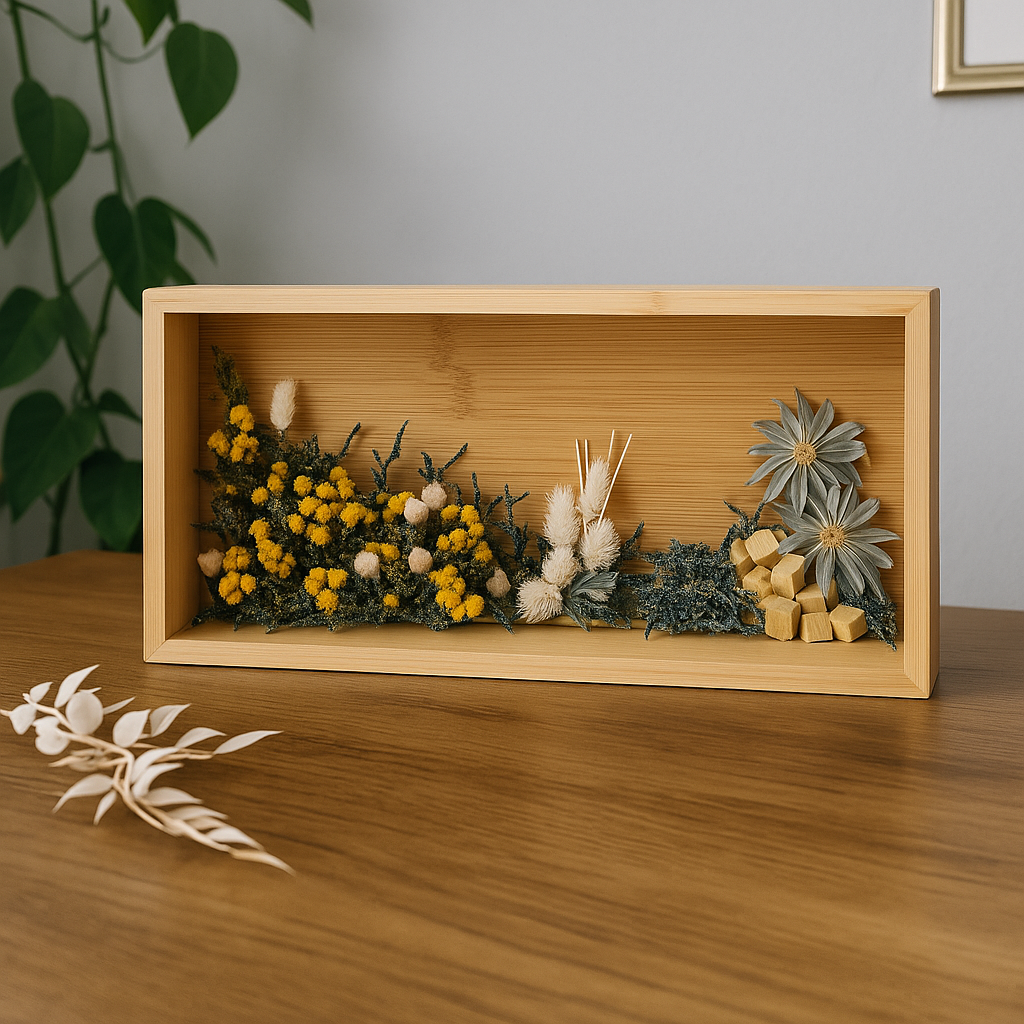 Nuestros marcos de flores secas son el resultado de un trabajo paciente y detallista, donde cada color, textura y forma encuentra su lugar.