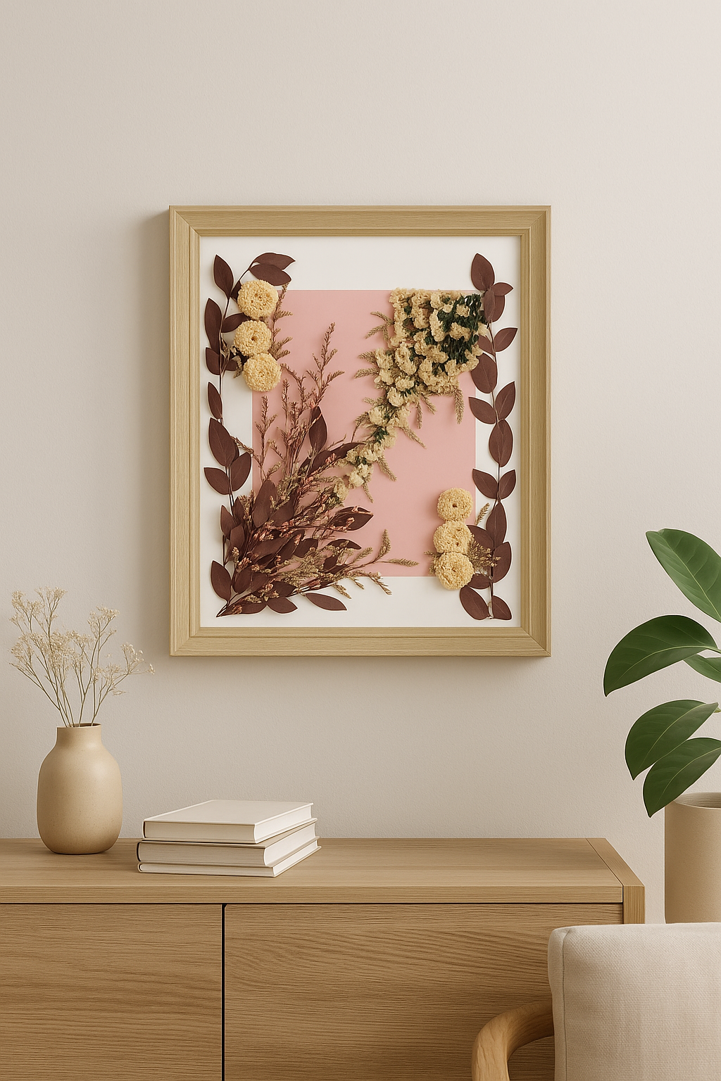 Nuestros marcos de flores secas son el resultado de un trabajo paciente y detallista, donde cada color, textura y forma encuentra su lugar.